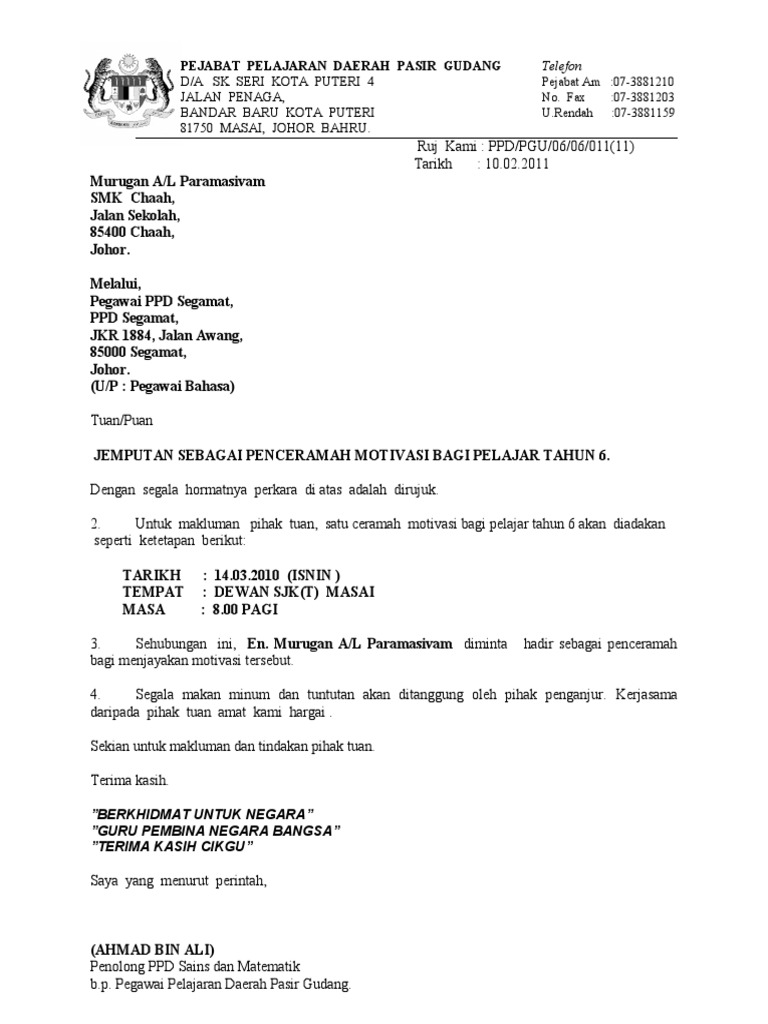 08.06.2015 pengarah, agensi antidadah kebangsaan negeri melaka, surat panggilan jemputan penceramah sjkt masai rujukan kami : Surat panggilan orang tua kepada yth. Surat panggilan kerja harus ditulis dengan menggunakan bahasa baku dan sopan. Huruf besar, huruf kecil, koma, noktah dan sebagainya. Tuntutan bayaran saguhati kepada pensyarah / penceramah. Guru kelas akan mengambil kedatangan pelajar dibantu oleh ketua kelas.